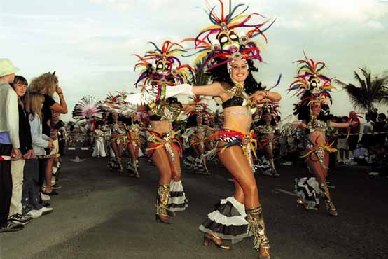 Las FiestasLos Carnavales![]() >> Los Carnavales siempre han sido aprovechados como momento de evasión. Por otro lado sirven, más que otras fiestas, para permitirse “excesos” impensables a lo largo del año. Finalmente, en los Carnavales se dan auténticas transformaciones en el comportamiento de las personas, y es que es difícil encontrar personas que no se animen a probar al menos una vez a ser alguien diferente a través de un disfraz. -Las tradiciones:Los Carnavales lanzaroteños destacan además por ser una fiesta ligada a creencias y actividades del pasado. Los Carnavales en la Villa de Teguise son una excelente oportunidad para ver uno de esos lazos, una de las manifestaciones más genuinas de las tradiciones canarias. Hablamos de los Diabletes, mezcla de creencias aborígenes, castellanas y moriscas, además de influencias uruguayas. Los Diabletes, vestidos con ropa pintada con rombos rojos o negros, y con caretas mezcla de diablo y toro, recorren Teguise con esquilas, palos, cuerdas y zurrones de piel de cabra durante todo el Carnaval, alegrando aún más si cabe las fiestas con mayor participación popular. Para más información: HERNÁNDEZ DELGADO, Francisco: Los Diabletes de Teguise. Ayuntamiento de Teguise. Teguise, 1989. Cuaderno de Difusión de Cultura n.º 1. Otra tradición que persiste, esta vez en Arrecife, es la de los Buches. Los buches son vejigas de pescado hinchadas que llevaban los marineros disfrazados y que usaban para “golpear” a quienes se encontraban por las calles. En la actualidad esta tradición se mantiene a través de la Parranda Los Buches, que actúa tanto sobre los escenarios como por las calles. -Los modernos Carnavales:Los Carnavales de Lanzarote son de los más animados de Canarias, lo que se traduce en que figuran entre los más interesantes del Mundo. Los Carnavales comienzan en Arrecife, y se extienden durante casi dos meses por el resto de la Isla. Las comparsas, animados grupos de baile con vistosos trajes, y las murgas, que utilizan la ironía para criticar los temas de actualidad y a los políticos, desfilan por las calles animando el ambiente lleno de bromas y música. La elección de la Reina del Carnaval, el Desfile de Carrozas y el Entierro de la Sardina son los momentos cumbre de los Carnavales, en los que la calle se llenan de gente disfrazada y el buen humor y la alegría se respiran en el aire. |